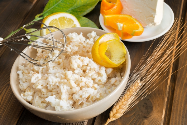 – Versare in una capiente ciotola la ricotta, 250 grammi di zucchero, la vanillina ed un pizzico di sale, lavorare il tutto per ottenere un composto omogeneo, quindi aggiungere i tuorli uno alla volta ed il cedro e l’arancia candita, tagliati a pezzetti. Incorporare alla farcia il grano freddo e l’acqua di fiori di arancio. A parte montare a neve ben ferma i 5 albumi ed incorporarli, mescolando con molto delicatezza per evitare che possano smontarsi, al ripieno di ricotta e grano.
